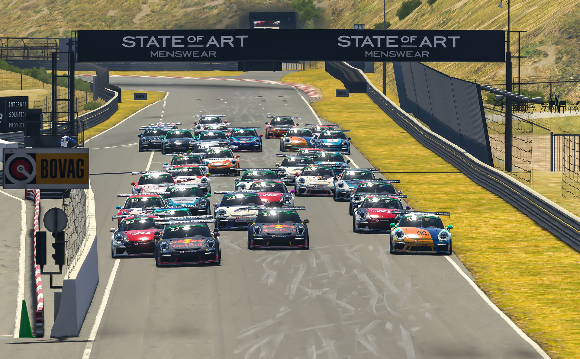 Die actionreiche Anfangsphase des Sprintrennens entschied Carroll im 485 PS starken Porsche 911 GT3 Cup für sich. Carrolls Verfolger hießen Tommy Østgaard (N/VRS Coanda Simsport) und Brian Lockwood (USA/RaceKraft Esports). Doch der 29-jährige Brite fuhr souverän zu seinem ersten Esports-Supercup-Sieg. „Die Freude über den Auftaktsieg ist riesig. Patrik Holzmann und Sebastian Job sind zwei starke Teamkollegen, das motiviert einen natürlich. Wir wollen dieses Jahr so erfolgreich wie möglich sein“, sagte Carroll. Østgaard und Lockwood komplettierten das Podium. Vorjahres-Champion Joshua Rogers belegte den vierten Platz vor Sebastian Job.