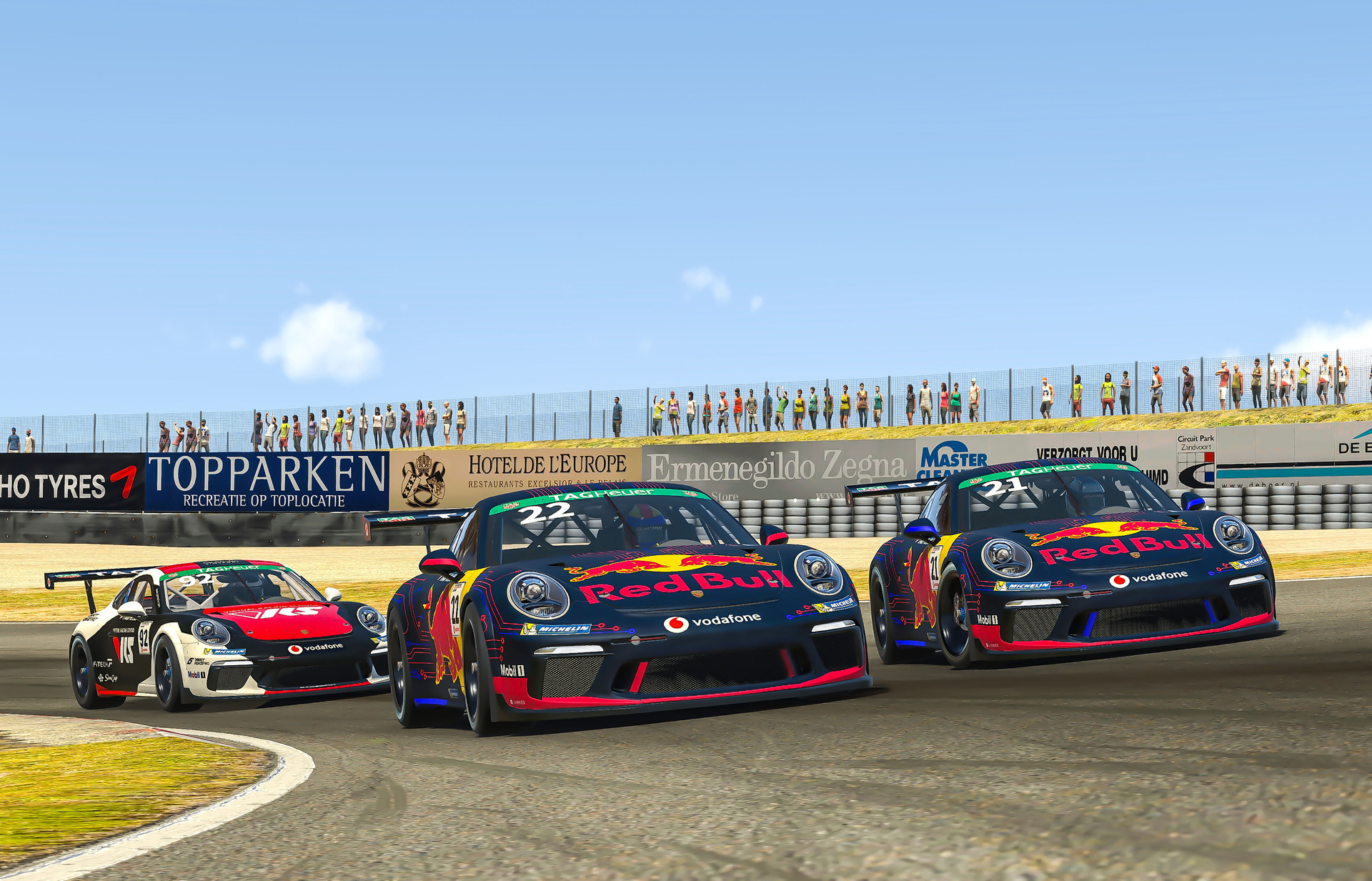 Erfolgreicher Start in die neue Saison des Porsche TAG Heuer Esports Supercup für Graham Carroll und Sebastian Job: Das britische Duo vom Team Red Bull Racing Esports gewann am Samstag die ersten beiden Rennen der Saison 2020 auf dem Circuit Zandvoort in den Niederlanden. Carroll setzte sich im 15-minütigen Sprintlauf durch, Job siegte beim halbstündigen Hauptrennen. Während sich Vorjahresmeister Joshua Rogers (AUS/VRS Coanda Simsport) im Hauptrennen einen Podiumsplatz sichern konnte, pflügte Formel-1-Pilot Max Verstappen (NL/Team Redline) durch das Feld vor bis auf Platz elf. Insgesamt 40 Simracer gingen beim Saisonauftakt der Porsche Esports-Meisterschaft auf der Simulationsplattform iRacing an den Start.
