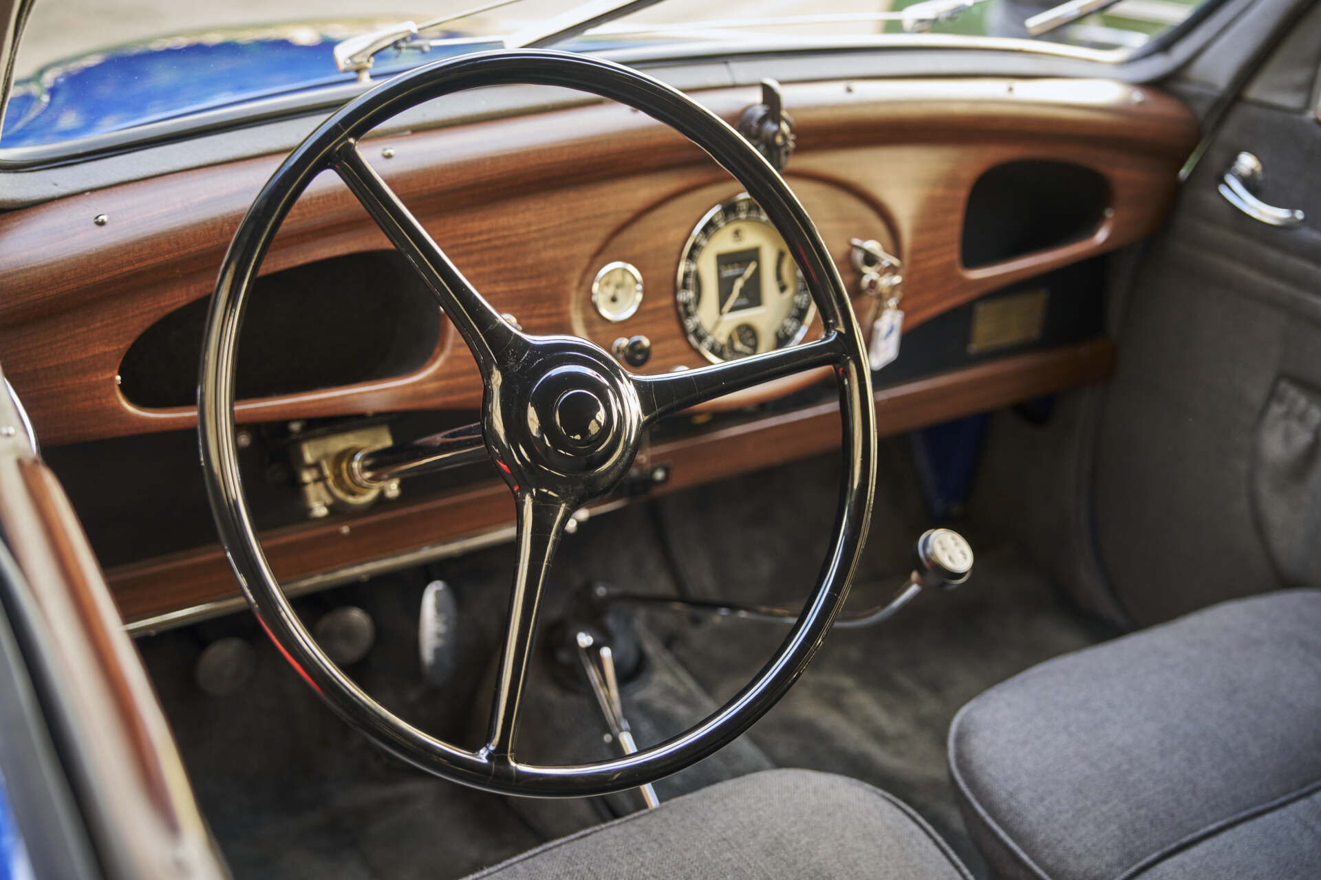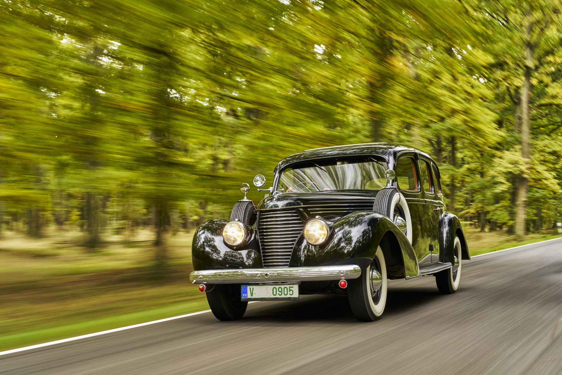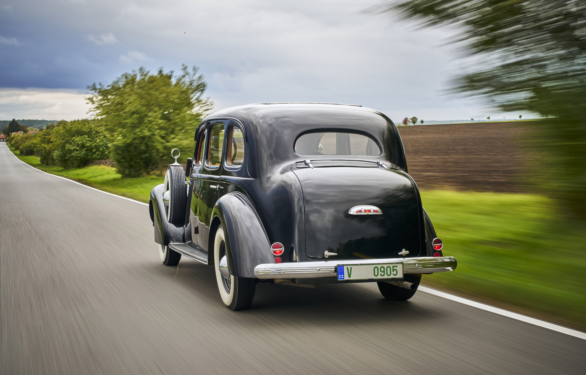 Der Superb war in verschiedenen Karosserievarianten erhältlich, darunter Limousine, Semi-Cabrio und Sonderanfertigungen. 1938 stellte Škoda auf das effizientere OHV-Konzept mit Ventilen im Zylinderkopf um, wodurch die Motorleistung verbessert wurde. Die schwarze Superb-Limousine aus dem Škoda Museum, die von einem privaten Sammler erworben wurde, verfügt über Ersatzräder in den vorderen Kotflügeln und Zusatzsitze, wodurch sie zu einem Siebensitzer wird. Insgesamt wurden 275 Einheiten gebaut.