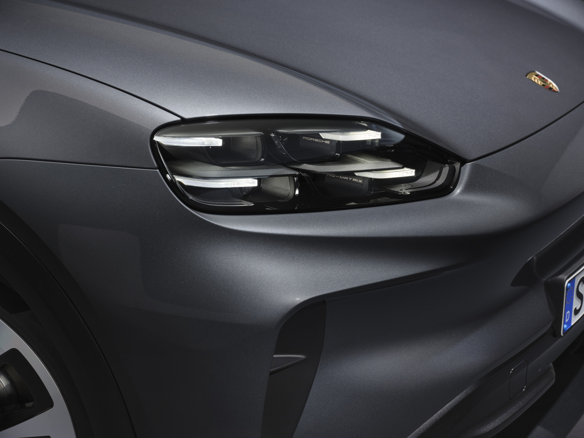 Der Cayenne Electric verbindet markentypische Proportionen mit einer klar weiterentwickelten Designsprache. „Der neue Cayenne ist unverkennbar Porsche und unverkennbar Cayenne. Wir haben auf bewährten Designmerkmalen aufgebaut und das bewahrt, was dieses SUV einzigartig macht. Ergebnis ist ein modernes Designkonzept, das den Cayenne in die Zukunft trägt“, sagt Michael Mauer, Leiter Style Porsche. Zu den Highlights zählen die tiefe Fronthaube mit den flach ausgeführten Matrix LED-Scheinwerfern mit optionaler HD-Technologie. Diese betonen die Breite des Fahrzeugs und fassen alle Lichtfunktionen in einem Modul zusammen. Typisch Porsche sind die stark konturierten Kotflügel und die Flyline, also die ikonische Gestaltung der flach abfallenden Dachlinie.