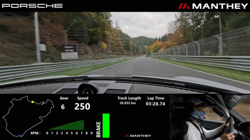 Auf der Nürburgring Nordschleife, bei Porsche traditionell das Prüflabor für Sportwagen, kann der 911 GT3 mit Manthey Kit seine Trümpfe voll ausspielen. Mit dem amtierenden DTM-Champion Ayhancan Güven am Steuer umrundete der modifizierte GT-Sportler den 20,8 Kilometer langen Kurs in der Eifel bei nicht idealen Bedingungen in 6:52,981 Minuten – und damit bereits 2,76 Sekunden schneller als die Vorgängergeneration (992.1) des 911 GT3 mit Manthey Kit. Beide Fahrzeuge waren mit den optional erhältlichen Reifen des Typs Michelin Pilot Sport Cup 2 R ausgerüstet. Die Rundenzeit wurde von einem vor Ort anwesenden Notar beglaubigt.