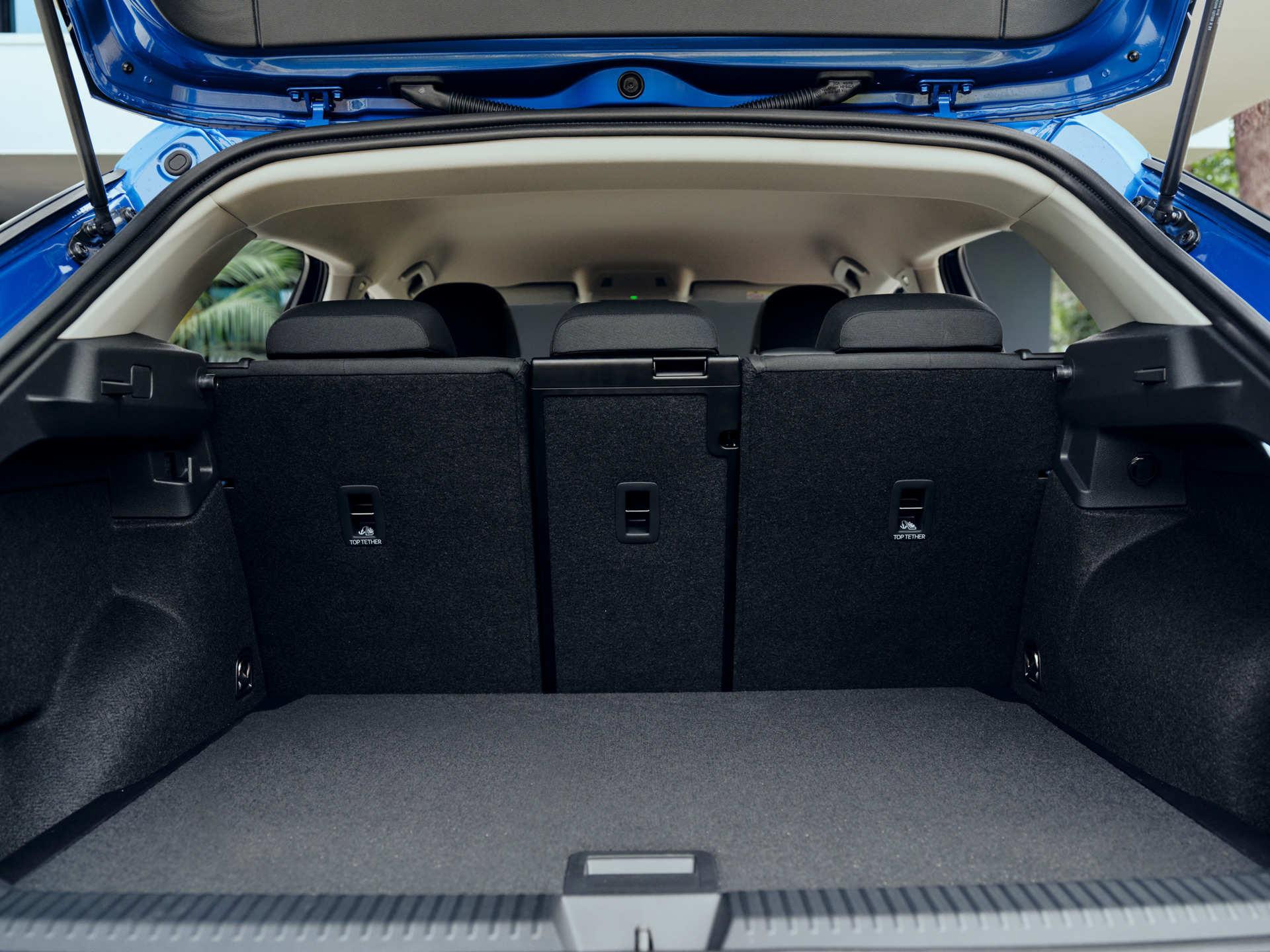 Klares Plus an Knie- und Kofferraum. Wer vorne als Fahrer oder Beifahrer im T-Roc Platz nimmt und über die hohe und gut einsehbare Motorhaube hinausblickt, wähnt sich nicht in einem SUV der Kompaktklasse, sondern der Mittelklasse. Verstärkt wird dieser Eindruck durch das langstrecken- und familientaugliche Platzangebot der zweiten T-Roc Generation. Selbst wenn vorn Personen mit einer Größe von über 1,85 m sitzen, finden im dreisitzigen Fond Gäste mit ähnlicher Statur ausreichend Knieraum. Hier wirkt sich das Plus von insgesamt 122 mm aus, die der neue T-Roc in der Länge gewachsen ist. Darüber hinaus ist dafür gesorgt, dass auch das Gepäck von fünf Reisenden ausreichenden Raum bekommt: Dank des Plus an Länge erhöhte sich das Kofferraumvolumen bei Beladung bis zur Höhe der 1/3 zu 2/3 klappbaren Rücksitzlehnen um 30 auf 475 Liter. Ab der Ausstattungsstufe „Life“ kann der Bereich der Mittelarmlehne separat inklusive mittlerer Kopfstütze umgeklappt werden, um Platz für lange Gegenstände wie Skier zu schaffen.