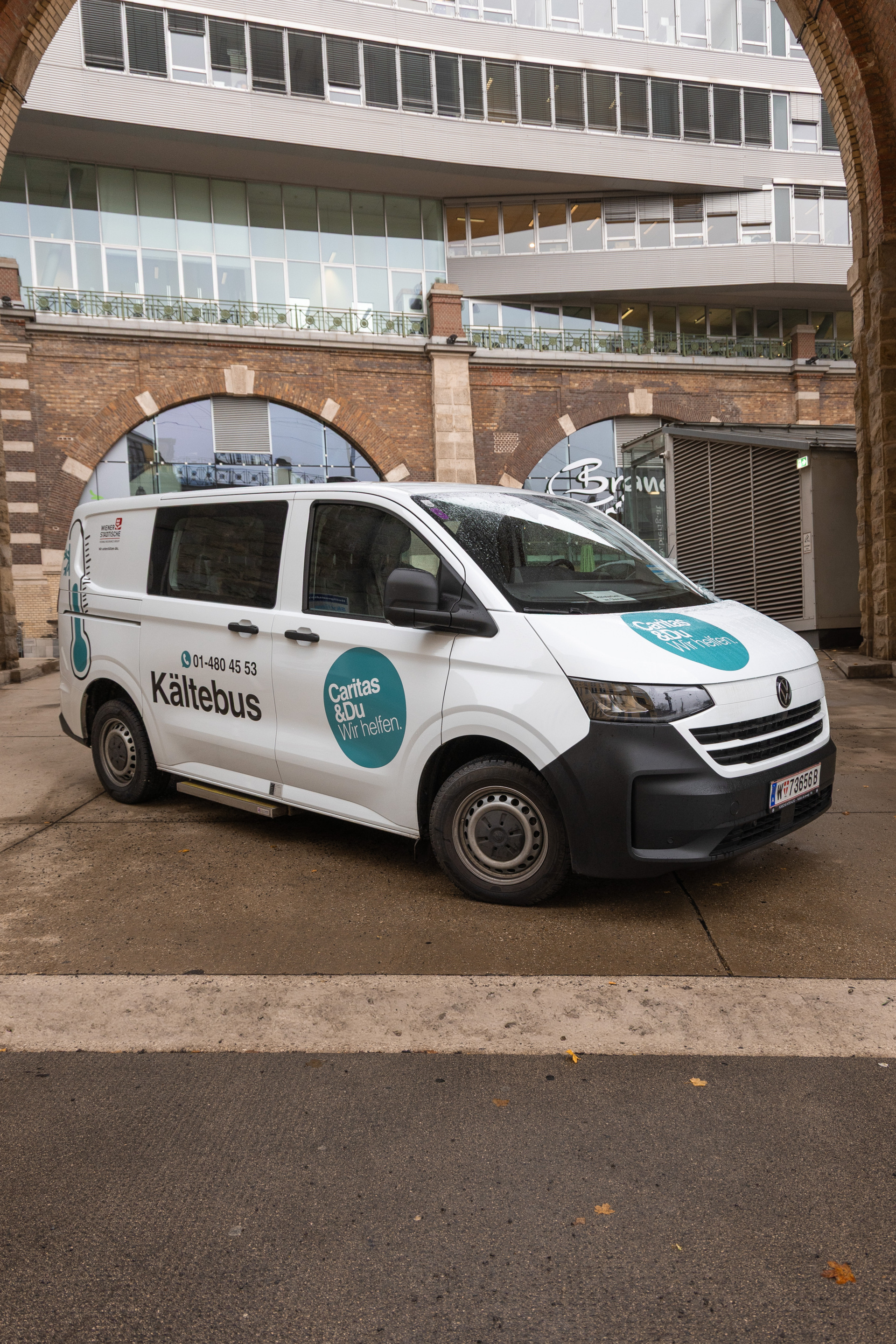 Der Kältebus der Caritas ist ein neuer Transporter Kastenwagen Plus und hilft dabei, obdachlose Menschen mit warmen Getränken, Decken sowie Sachspenden zu versorgen und vermittelt bei Bedarf weiterführende Hilfe.