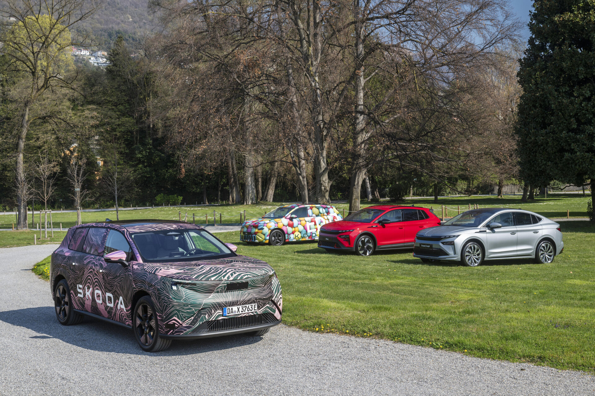 Alle Interieur-Varianten sind serienmäßig mit einer Ambientebeleuchtung und einem beheizbaren Multifunktionslenkrad mit Škoda Schriftzug ausgestattet. In der gesamten Modellreihe kommt ein Zwei-Speichen-Lenkrad zum Einsatz, lediglich die Sportline-Version verfügt über ein DreiSpeichen-Lenkrad mit Hands-Off-Erkennung und Schaltwippen für das Rekuperationsbremsen. Ausgewählte Innenausstattungen sind vollständig frei von tierischen Produkten, nachhaltig und enthalten mehr als 50 kg recycelte Materialien. Eine Design Selection mit Echtlederausstattung wird im Laufe dieses Jahres ebenfalls erhältlich sein.