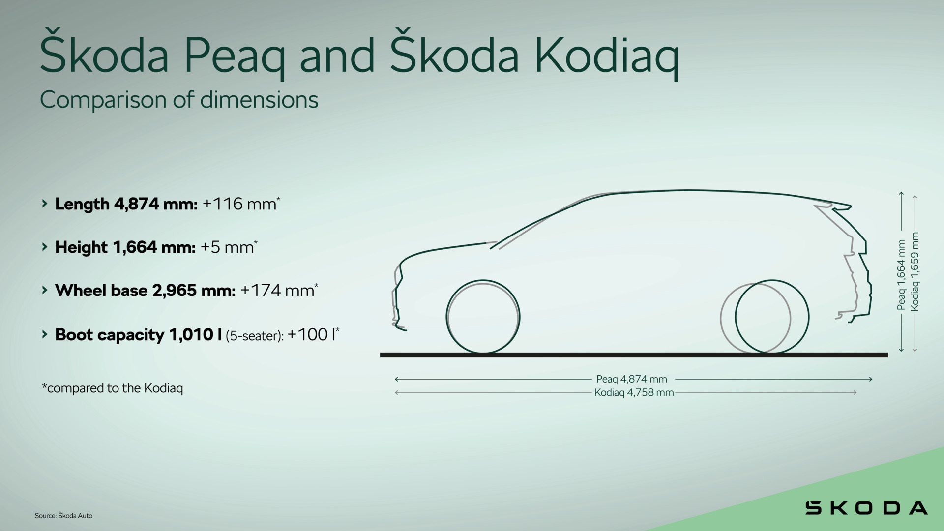 - „Peak spaciousness“: Der Peaq verfügt über den größten Kofferraum im aktuellen Portfolio und das größte Panoramadach, das es je bei einem Škoda gab
