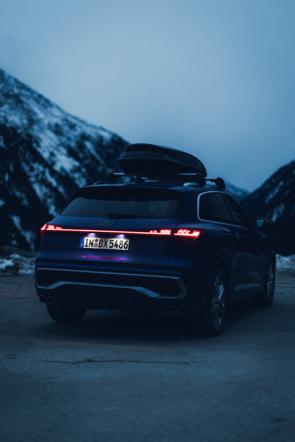 Unterwegs soll nach Herzenslust fotografiert und gefilmt, vor Ort dann vielleicht noch ein wenig gewintersportelt werden. Das passende, durchaus sperrige Equipment zu verstauen ist dennoch kein Problem: Auf den beiden SQ5 SUV sind Audi Original Dachboxen montiert. Im Kofferraum aller Autos finden bei umgeklappter Durchlade bequem die Skitaschen Platz.