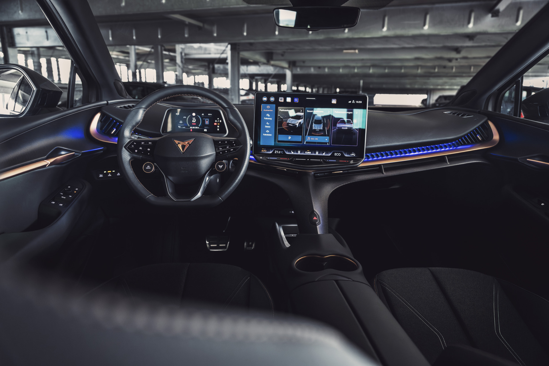Und obwohl man es auf den ersten Blick kaum glaubt: Auch der Innenraum ist pragmatisch – zumindest in Hinblick auf Ergonomie und Platzangebot. Die serienmäßigen CUPRA Sportschalensitze aus recyceltem Mikrofaser überzeugen mit Komfort und Seitenhalt, das optionale Panorama Glasdach flutet den Innenraum mit Licht, der Radstand von knapp 2,8 Metern ermöglicht großzügige Platzverhältnisse vorne wie hinten.