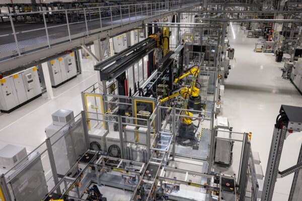 Die hochmoderne Modulfertigung ist mit einer Echtzeit-Prozessdatenerfassung ausgestattet. Sie garantiert in jedem Fertigungsschritt die volle Transparenz und Kontrolle . Bevor ein Batteriemodul das Werk verlässt, werden sämtliche Qualitätskriterien geprüft und alle Produktionsdaten sicher in der Cloud archiviert. Das bedeutet: Jedes gefertigte Modul hat eine durchgängige Qualitätskontrolle parallel zum Herstellprozess durchlaufen. Damit kann das Werk relevante Daten sofort bereitstellen und auch nach Jahren eine lückenlose Rückverfolgbarkeit gewährleisten.