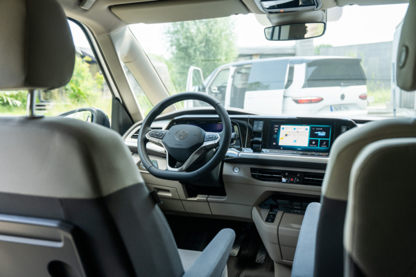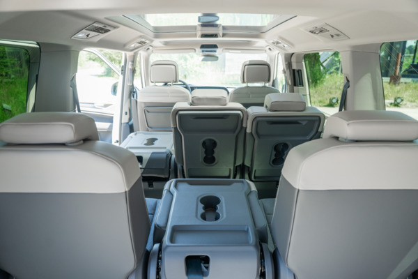 Genauso vielseitig wie sein Antrieb ist die Kabine des Multivan. Sie ist serienmäßig mit zwei Schiebetüren ausgestattet, kann als Fünf-, Sechs-, Sieben- oder Achtsitzer konfiguriert werden und bietet je nach Sitzkonfiguration bis zu 4.053 Liter Ladevolumen. Für Trailerfahrten verfügt der Multivan über maximal 2.000 Kilogramm Anhängelast – damit lassen sich problemlos Pferdeanhänger oder Wohnwägen ziehen. Wer seinen Multivan auch zum Campen nutzen möchte, bekommt mit den Varianten California, Beach, Beach Camper, Coast und Ocean multifunktionale Reisemobile an die Hand. Und: Die Plug-in-Hybridversionen verfügen serienmäßig über eine elektrische Standklimatisierung, mit der der Multivan beim Laden, Parken oder Campen gekühlt oder beheizt werden kann – ganz ohne Abgase.