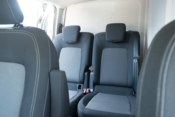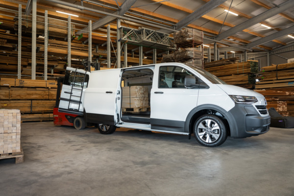 Dass der neue Transporter nicht nur effizienter, sondern auch praktischer geworden ist, zeigt sich bei der Ladefläche: Sie ist größer, niedriger und vielseitiger zugänglich. Die niedrige Ladekante auf 575 Millimeter Höhe erleichtert das Be- und Entladen des je nach Variante bis zu 5,8 m3 (Normalradstand und Normaldach) beziehungsweise 9,0 m3 (langer Radstand, Hochdach) großen Laderaums. Das erlaubt das Verstauen von bis zu drei Euro-Paletten. Besonders clever: Die neue L-Trennwand, die die vordere Sitzreihe und zwei Einzelsitze in der zweiten Reihe vom Fahrersitz abgrenzt. Auf der Fahrerseite reicht der Laderaum so bis zur ersten Sitzreihe, wodurch 3,0 Meter (Normalradstand) oder 3,4 Meter (langer Radstand) lange Gegenstände transportiert werden können.